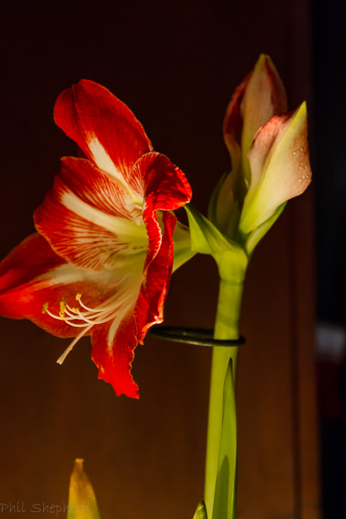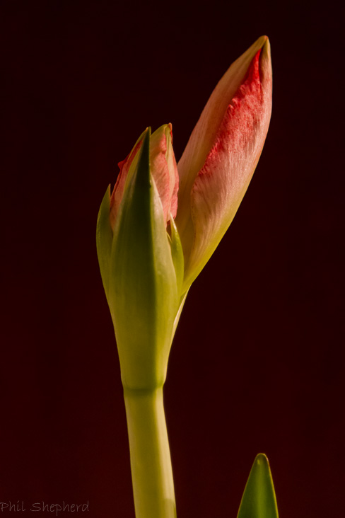 For almost a week I have been documenting the bloom of an Amaryllis we received as a gift. The main reason I did this was to gain confidence when utilizing a high iso on my 7D. This camera is not know for it’s high iso capability so for the past year with that fact in my head I was guilty of underexposing images due to the fact that I was scared to go above a setting of 1600. Many times I am unable to use flash and find myself fighting for light.