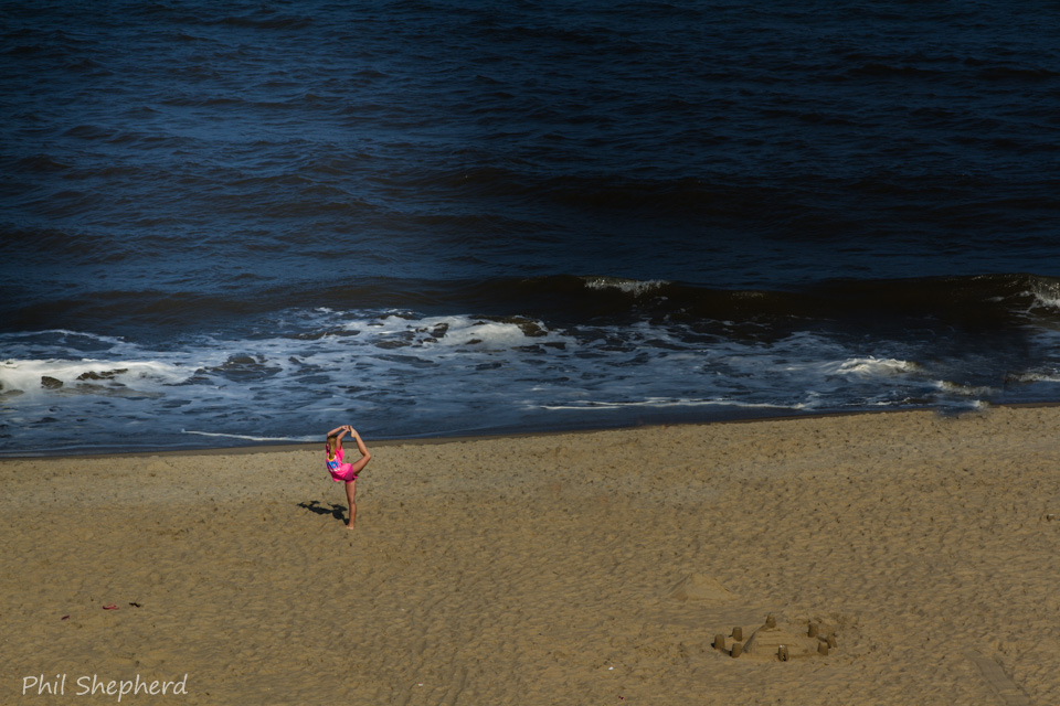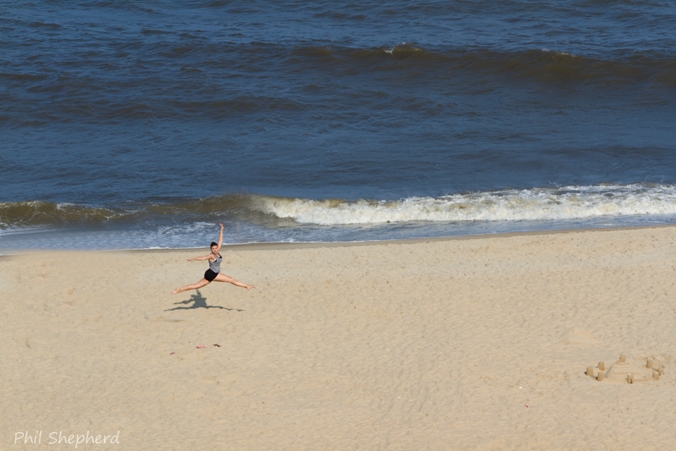 I was in Maryland recently cheering on my daughter’s dance team during their national competition. During some down time, standing on the balcony of our hotel, seven floors up and over looking the ocean I get a call from my daughter who was on the beach with a friend. “Dad, can you take pictures of us jumping?” Unable to resist the challenge on went the 200 mm, and a few phone calls later we had what we wanted.