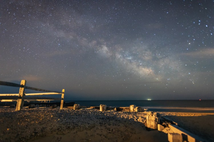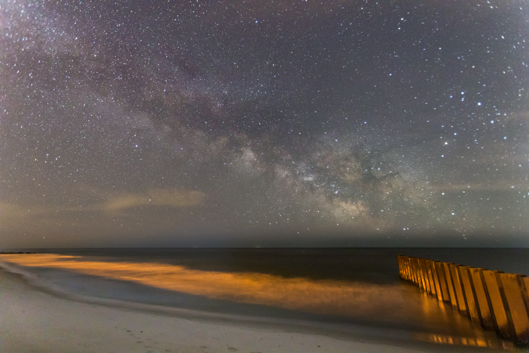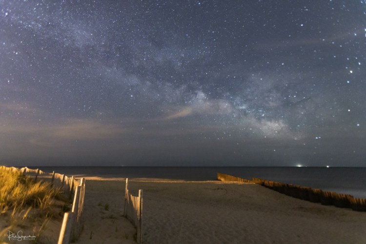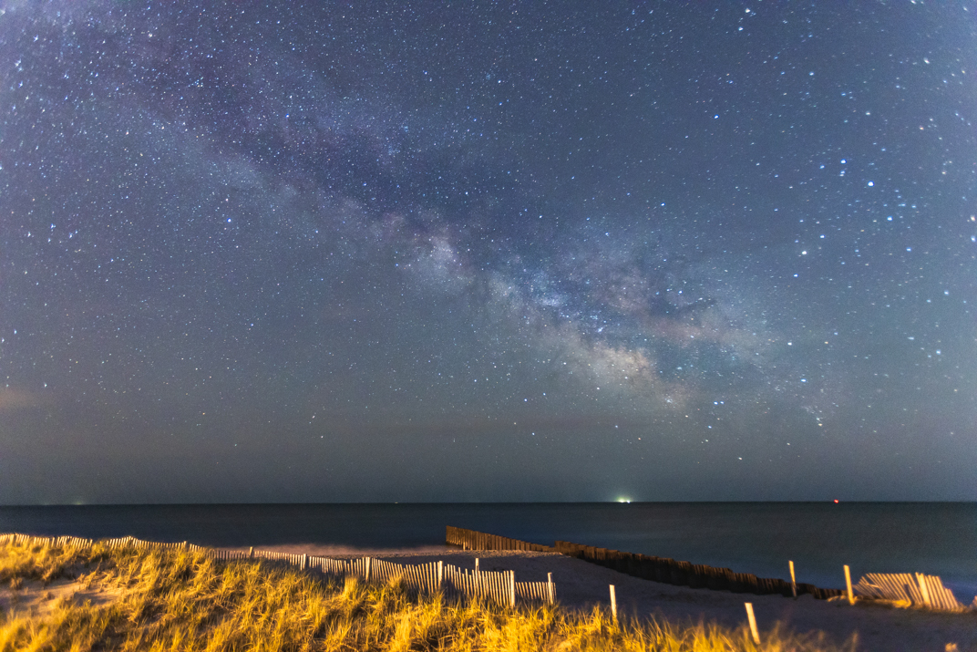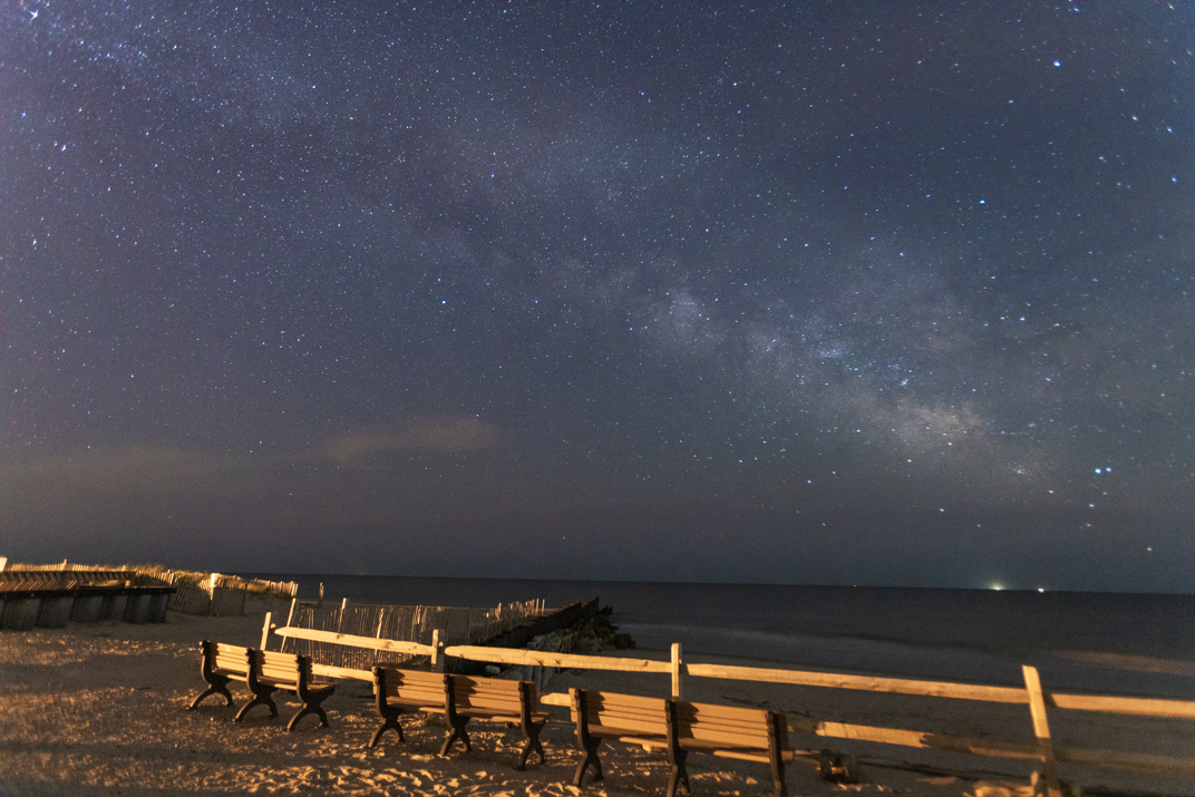 I heard the median batting average is .246 for the entirety of MLB. WTF. Pitchers unite! This is a shocking number. Anyway, my Milky Way cleanup, commonly known as the fourth attempt, happened while I flexed my hours at work to get off an hour earlier than normal. Thursdays are a peak day for me, swing shift as some would call it, so I am always working till midnight. I headed down to the southern tip of LBI to see what I could see. I have grabbed a couple of sunsets here so I was familiar with the location and structures on the beach. Most people convene at the other side of the island by the Lighthouse. I will try that eventually, but since I am not most people I like to try the unpopular or less traveled spots. Hard to come by here in NJ due to the limited night spots in the immediate area. The initial thing I saw when I shut my car lights off was Atlantic City glowing in the sky. Gulp. Amazing how much light is put out from a small city. Casinos…