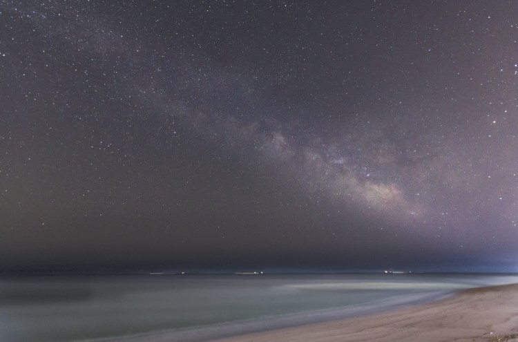 So much light coming in from Seaside, but there she is, looks visible to me. Well, visible to the camera, I cannot see a damn thing. My goal for the night was to get some longer exposures of the foreground and try to stack some images of the sky. I am still not grasping this stacking thing, perhaps it was because of the brightness in the sky I could not tell a difference. I actually appreciated the single shots more. Continued education needed.
