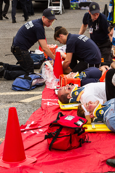 I have been involved in EMS for almost 20 years. 18 of those have been as a Paramedic so I am usually on the other side of the lens and involved in these drills as a participant rather than as a photographer. Drills like these can never truly prepare you for the real thing, the adrenaline level just does not compare, but they are incredibly important as an educational tool for all those involved. There is something for everyone to learn, from the administrators down to the providers. Even the simulated patients can take away a piece of knowledge or understanding they may have not previously had, they also provide a great source of critique.