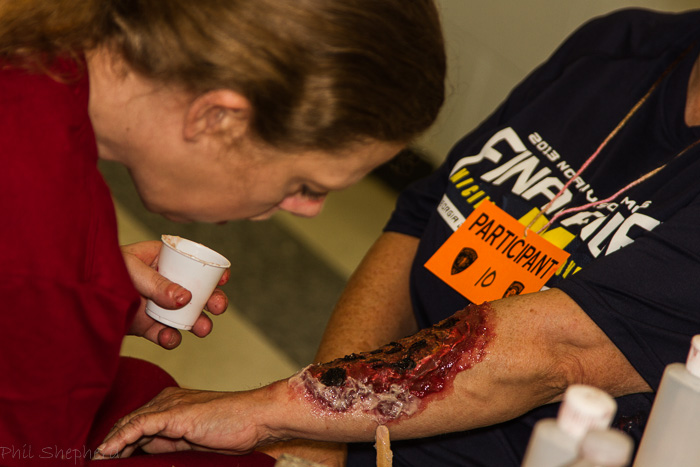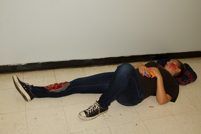 The scenario for the day was a backpack bomb that had been detonated at a local school. There were makeup artists on hand to provide a real life look to the “victims” and they did a fantastic job giving a very Walking Dead feeling to the morning. I still do not get the popularity of that show…