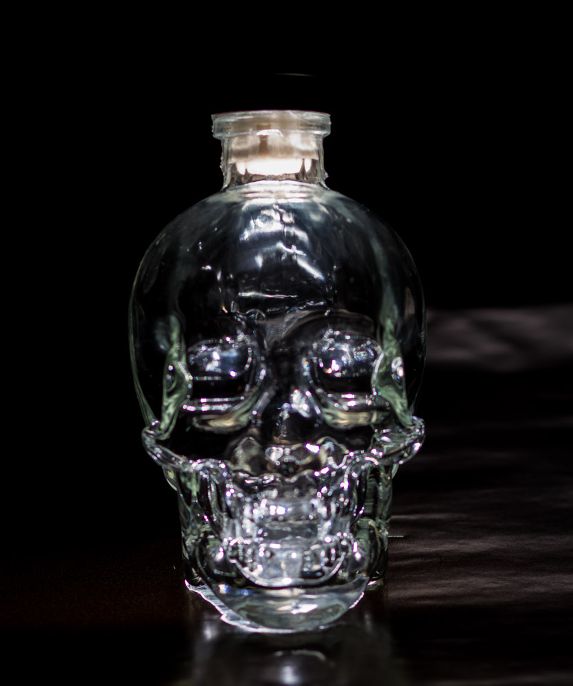 Indiana had his adventures with a Crystal Skull and I have been eyeing up the one my wife received for Christmas, just waiting for it to be emptied of its tasty contents. I have been wanting to see how light reflects through it when it is empty as well as when it is full of liquid. A little experiment to satisfy my curiosity and to help me understand the effect of water as a diffusion device. It has been empty for a couple of weeks now, just waiting for me to make my move on it wondering what I had in store.